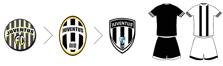 O JUVENTUS FUTEBOL CLUBE, a exemplo do seu homônimo italiano, tem as cores branca, amarela e preta além de um logotipo muito semelhante.